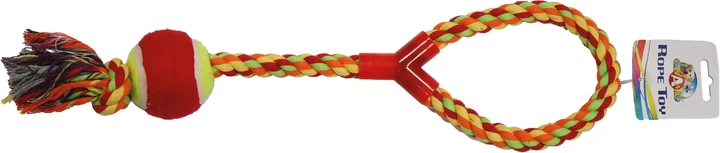 Іграшка для собак Croci Канат грейфер з ручкою і м'ячиком 43 см Різнобарвний (8023222143166)