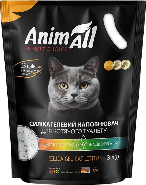 Наповнювач для котячих туалетів на основі силікагелю від AnimAll. Це висушений гель полі кремнієвої кислоти, який хімічно складається з того ж з'єднання, що і звичайний пісок , але є високо пористим тілом, тому має величезну площу поверхні. Завдяки цій властивості він має унікальну абсорбуючу здатність.  Волога і запах зникають миттєво, але сам наповнювач ніколи не перетворюється на в'язку масу і не прилипає до котячих лап, а значить, не розноситься по дому. Також необхідно відзначити високу гігієнічність наповнювача, який прекрасно справляється з будь-якими бактеріями, підтримує чистоту вашого будинку і зберігає здоров'я вашого улюбленця. Особливості: Гранули просякнуті квітковим ароматом, який виділяється при намоканні. Відібрані великі гранули, які мають ще більшу площу поглинання, менше прилипають до лап і шерсті, а, отже, рідше випадають з котячого туалету (ідеально підходять для довгошерстих порід). Упаковка забезпечена пластиковим замком для зручності зберігання у розкритому пакеті, що запобігає осушенню повітря і втраті поглинаючих властивостей. Пластикова ручка для зручного переміщення.