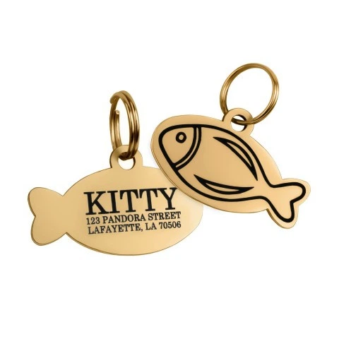 Адресник для Котів BronzeDog з Латуні, Покритої Золотом Рибка Золотистий 26*16 мм (90393)