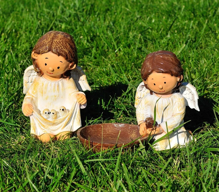 Набір фігур Янголята з пташками та годівничкою – 2 шт. (261713 см і 243017 см), садовий декор