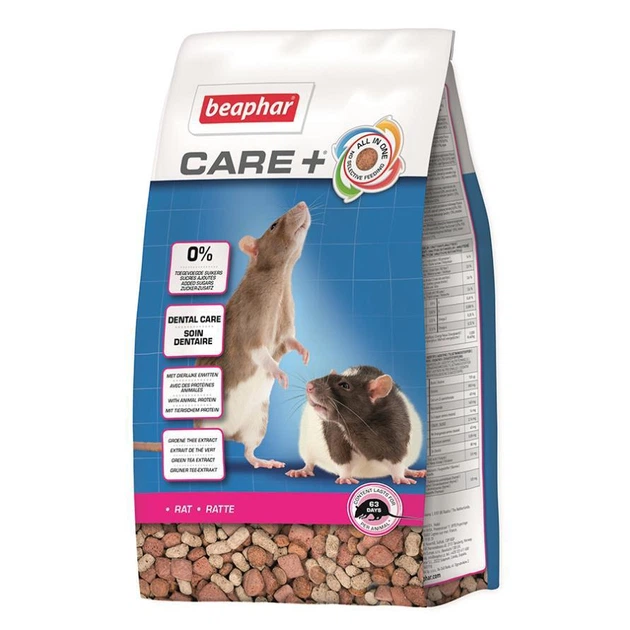 Повноцінний екструдований корм для щурів CARE+ містить тваринні білки та низький відсоток пилу, щоб не пошкодити чутливі дихальні шляхи щурів. Кожна гранула має однаковий склад («все-в-одному»), що важливо для збалансованого харчування та запобігання вибірковому поїданню без залишку. Спеціальні тверді гранули забезпечують природне сточування зубів (Dental Care). Упаковка 250 гр, 700 гр та 1,5 кг