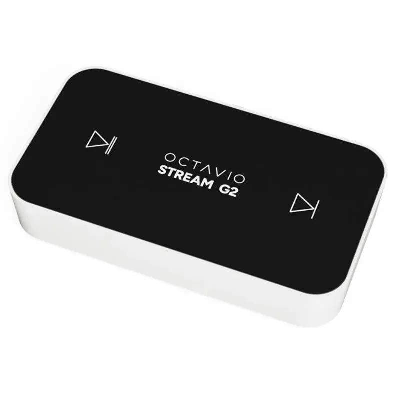 Octavio Stream G2 Octavio Stream G2 — це нове покоління мережевого стример-плеєра, створеного для зручного та якісного доступу до улюбленої музики з будь-якого джерела. Завдяки компактним розмірам (120 × 65 × 22.5 мм) й елегантному дизайну Octavio Stream G2 легко інтегрується в будь-який Hi-Fi комплект. Пристрій перетворює традиційні Hi-Fi підсилювачі та активні колонки на сучасні мережеві плеєри з підтримкою