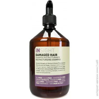 Шампунь відновлювальний для пошкодженого волосся Restructurizing Shampoo Insight надає блиск тьмяному й ламкому волоссю, роблячи його більш м'якими та здоровими. Шампунь для відновлення пошкодженого волосся містить біологічний екстракт паростків пшениці, олію оливи, олію аргани, олію рисових висівок. Усі ці компоненти сприяють активному відновленню структури волосся, олії живлять і