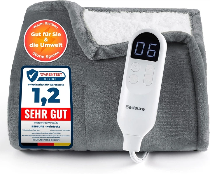 Електроковдра BEDSURE 130180 см, 6 режимів, таймер 10 годин, захист від перегріву — Сіра