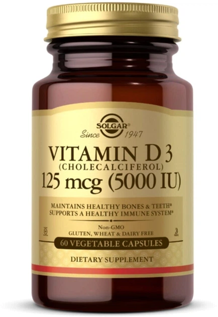 Вітамін D3 Solgar 5000 IU 60 капсул (033984033122)
