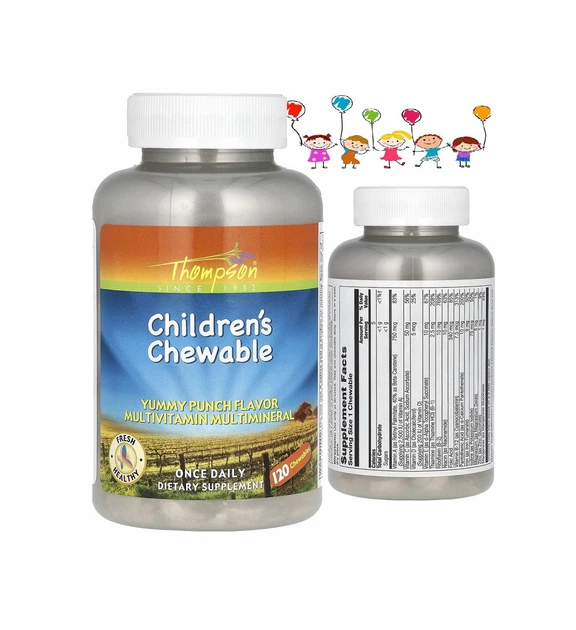 Мультивітамінами для дітей Thompson зі смаком пуншу 120 жувальних таблеток мікроелементи комплекс дитячий (031315191350)