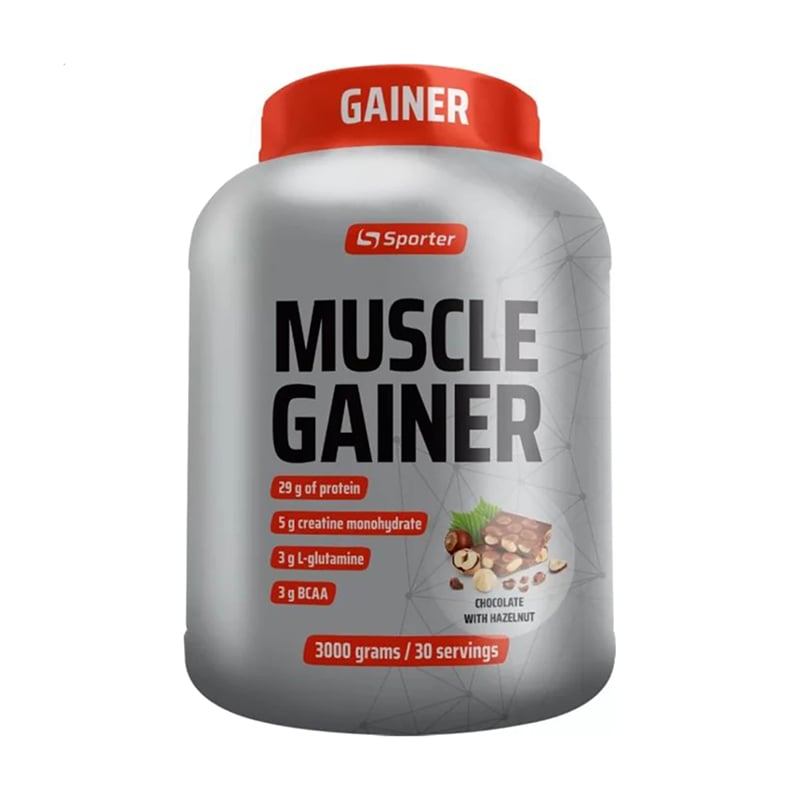 Гейнер Sporter Muscle Gainer Шоколад з фундуком, в порошку, 3 кг