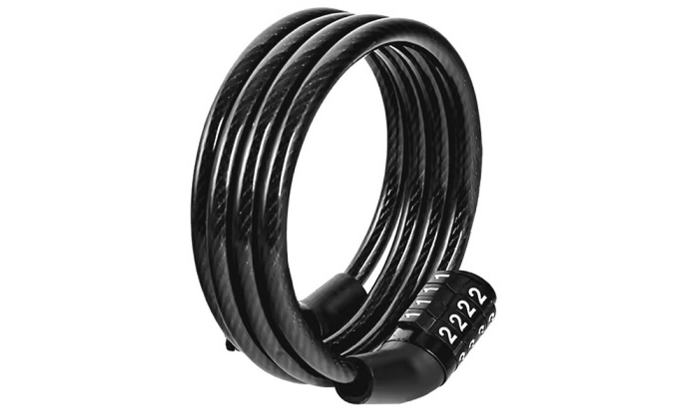 Велосипедний трос з кодовим замком – надійний протиугінний засіб. Його довжина 1.2 м, а товщина – 15 мм. Модель виконана зі сталі та поміщена в силіконове обплетення. Кодовий замок практичніший і зручніший у використанні, тому що немає необхідності мати під рукою ключ, який цілком реально втратити. Після придбання необхідно встановити потрібний код. Встановлення коду займе максимум хвилину часу. Модель замку має чотири обертові осередки з цифрами. У комплекті кріпиться на раму велосипеда.