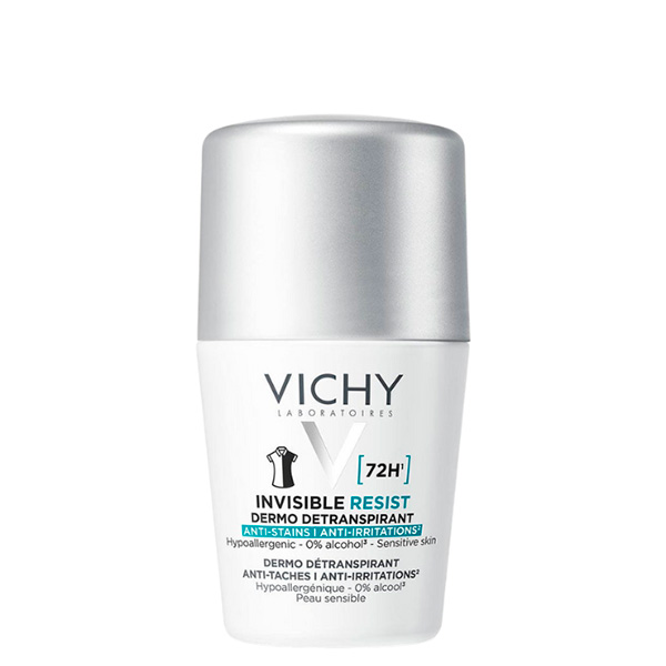Кульковий дезодорант-антиперспірант Vichy Deo Invisible Resist забезпечує надійний 72-годинний захист від поту та запаху. Його інноваційна формула не залишає білих слідів на одязі, швидко вбирається та підходить навіть для чутливої ​​шкіри. Збагачений термальною водою Vichy, що заспокоює та зміцнює шкіру пахв. Без парабенів, спирту та алюмінію – ефективність без подразнень та компромісів.