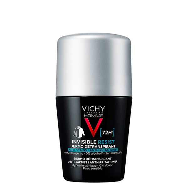 Кульковий дезодорант-антиперспірант Vichy Homme Invisible Resist 72H (50 мл.) забезпечує надійний захист від поту та запаху до 3 днів. Його прозора формула не залишає білих слідів на одязі, швидко вбирається та підходить для чутливої ​​шкіри. Збагачений термальною водою Vichy, що заспокоює і зміцнює шкіру пахв. Без спирту, парабенів та алюмінію – ефективність без подразнень та турбота про шкіру протягом усього дня.