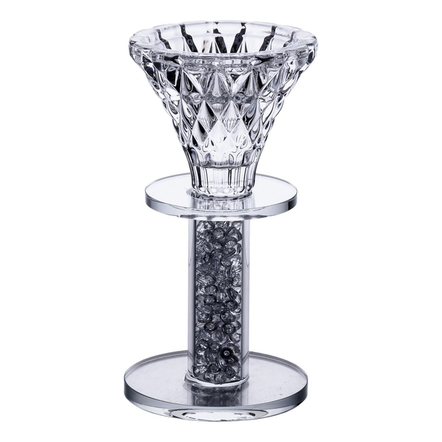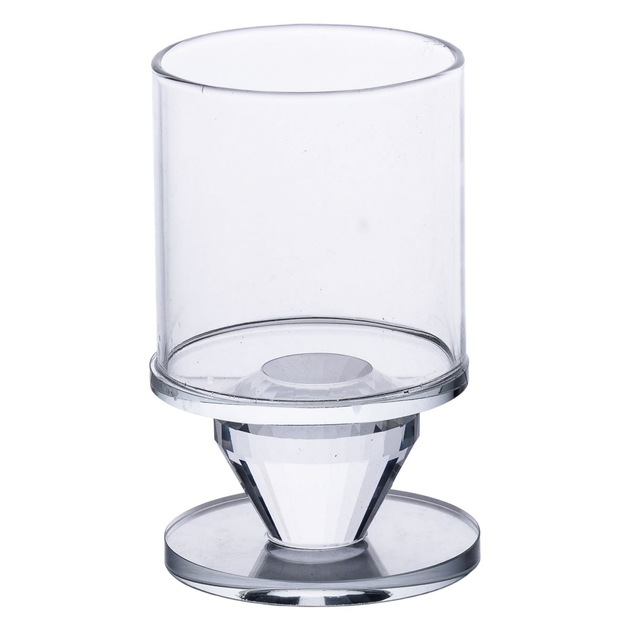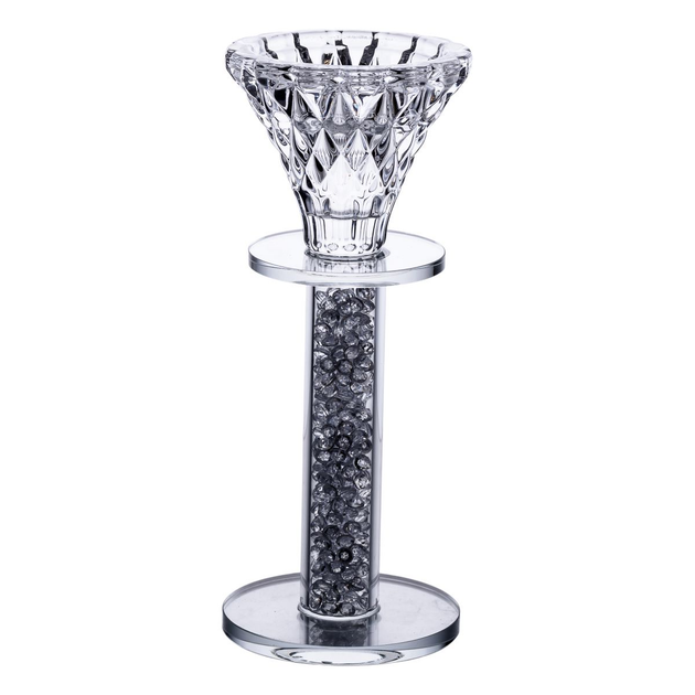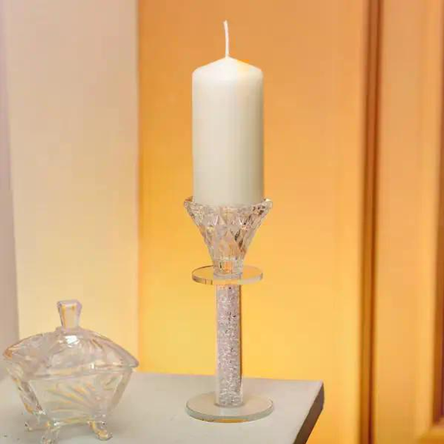 Підсвічник декоративний Diamante прозорий 15 см на ніжці з рельєфним дизайном для свічки діаметром 2 см