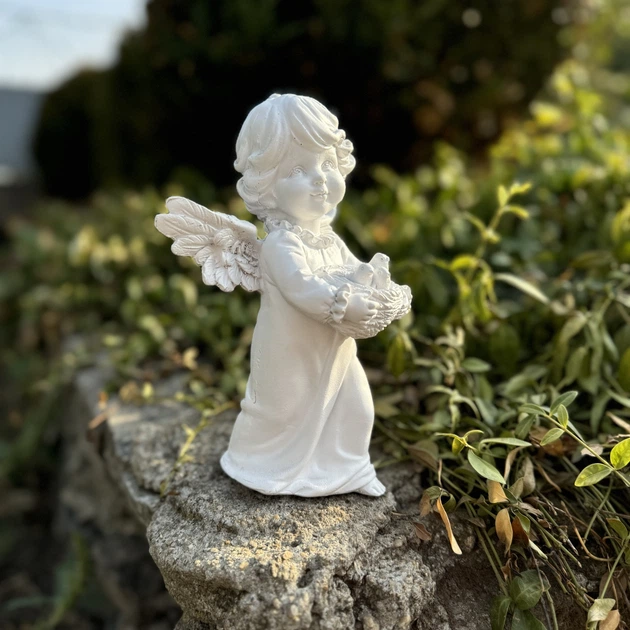 Фігура Янгол тримає гніздо з пташками(17128 см), статуетка янгола з полістоуну