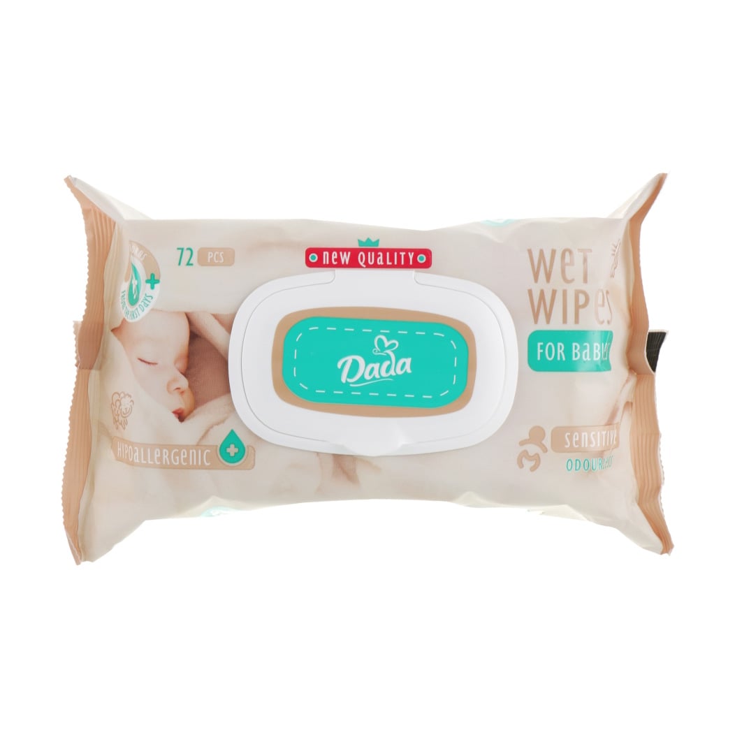 Дитячі вологі серветки Dada Sensetive без запаху з клапаном, 72 шт