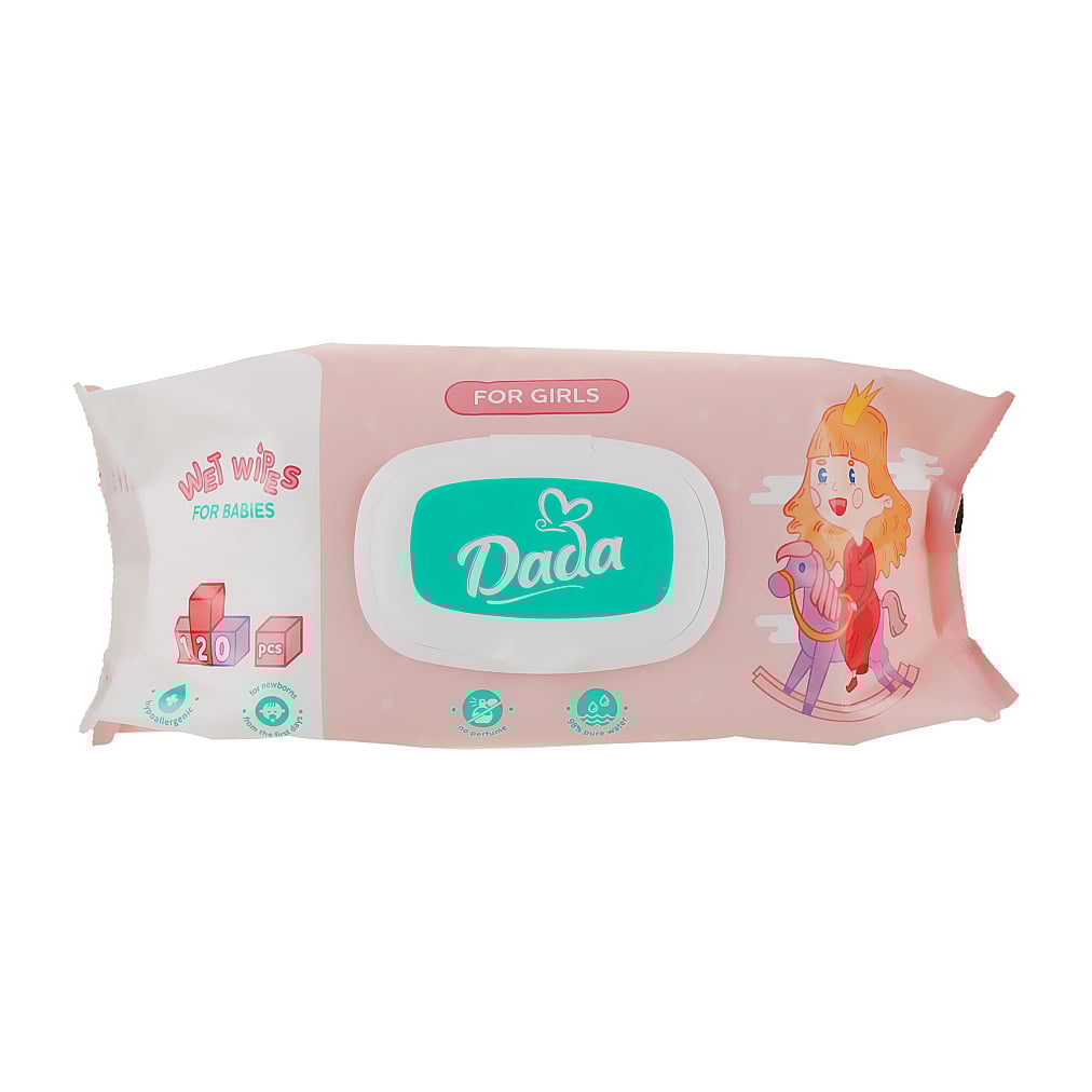 Дитячі вологі серветки Dada для дівчаток, без запаху, з клапаном, 120 шт