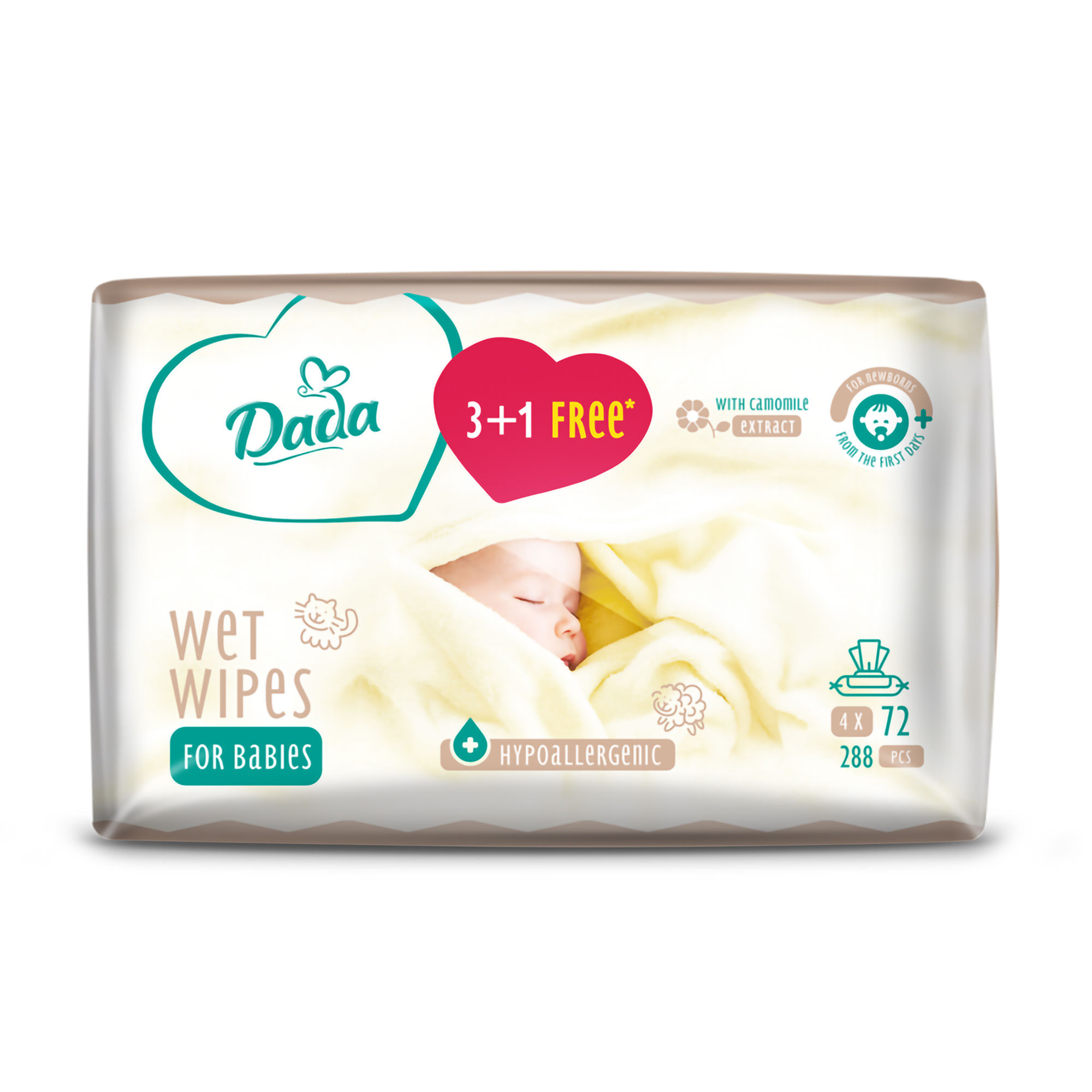 Дитячі вологі серветки Dada від народження, з екстрактом ромашки, 4*72 шт
