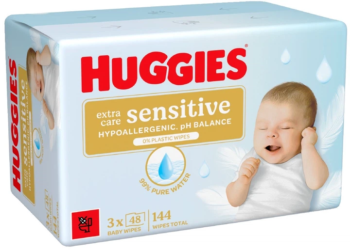 Серветки вологі Huggies Extra Care Sensitive 2 + 1 пачки х 48 шт (5029054253359)