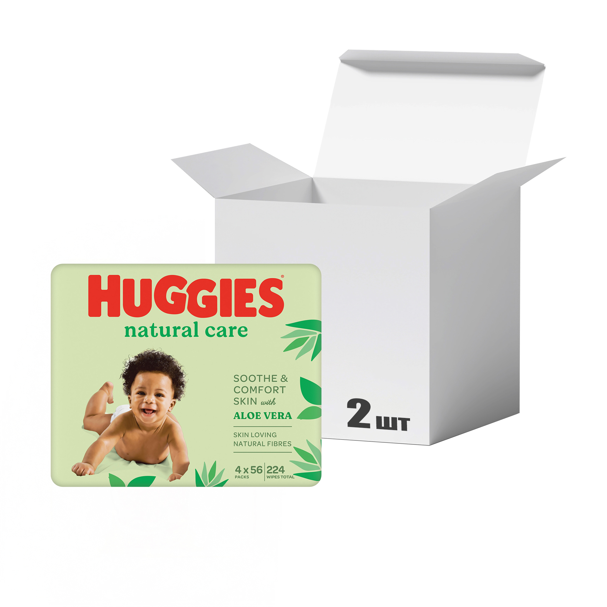 Упаковка дитячих вологих серветок Huggies Natural Care з екстрактом алое, 4*56 шт * 2 шт