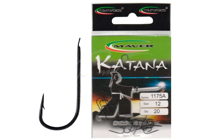 Крючок Maver Katana 1040A №18 20 шт 1300.07.39 - предназначен для ловли мирной рыбы, великолепно взаимодействует с насадками животного происхождения, такими как мотыль, пинка и опариш.