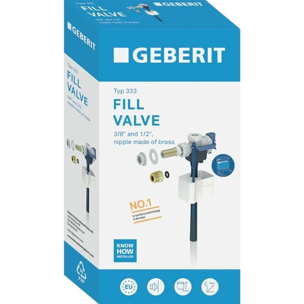 Впускний клапан Geberit типу 333 підведення води збоку 3/8 і 1/2 ніпель із латуні