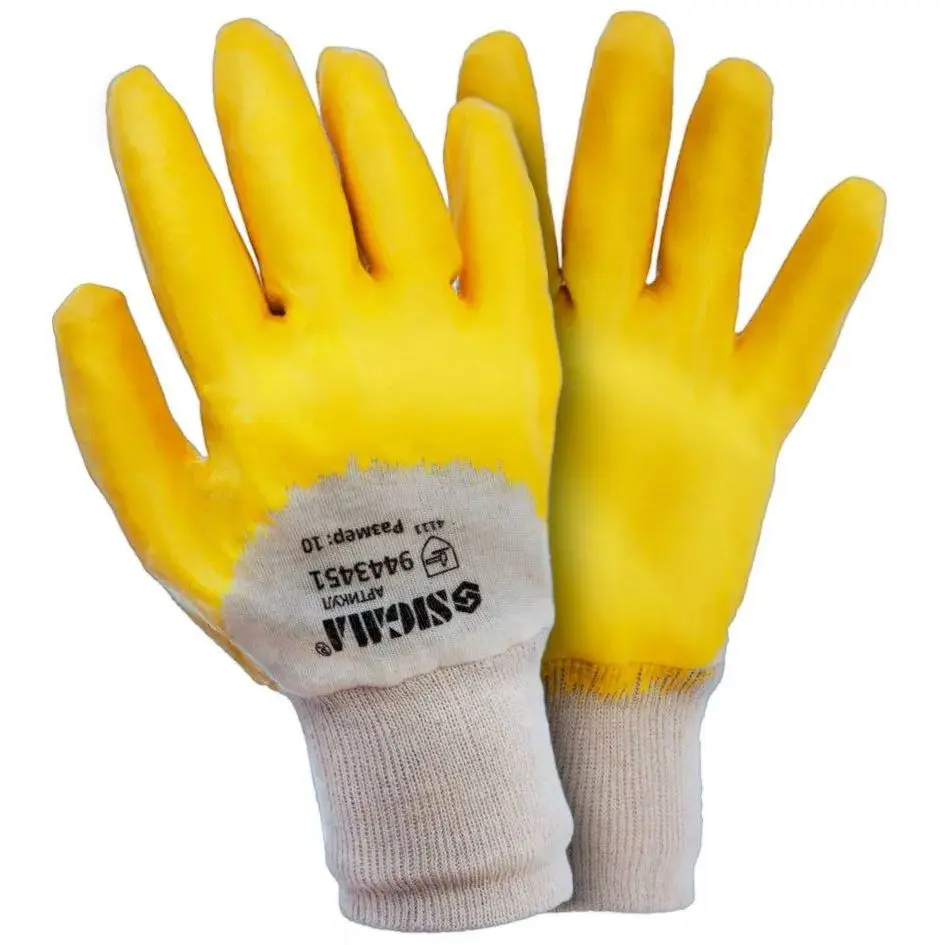 Колір: Білий, Жовтий; Розмір: XL (10); Виробник: Sigma; Вид покриття: Нітрил; Країна виробника: Китай; Матеріал рукавичок: Трикотаж