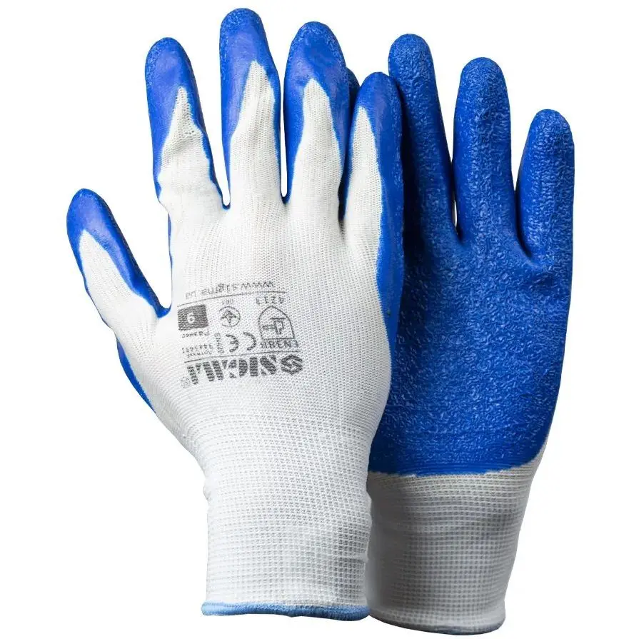 Колір: Білий, Синій; Розмір: L (9); Виробник: Sigma; Вид покриття: Латекс; Країна виробника: Китай; Матеріал рукавичок: Трикотаж