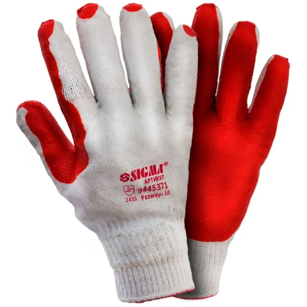 Колір: Білий, Червоний; Розмір: XL (10); Виробник: Sigma; Вид покриття: Латекс; Країна виробника: Китай; Матеріал рукавичок: Трикотаж