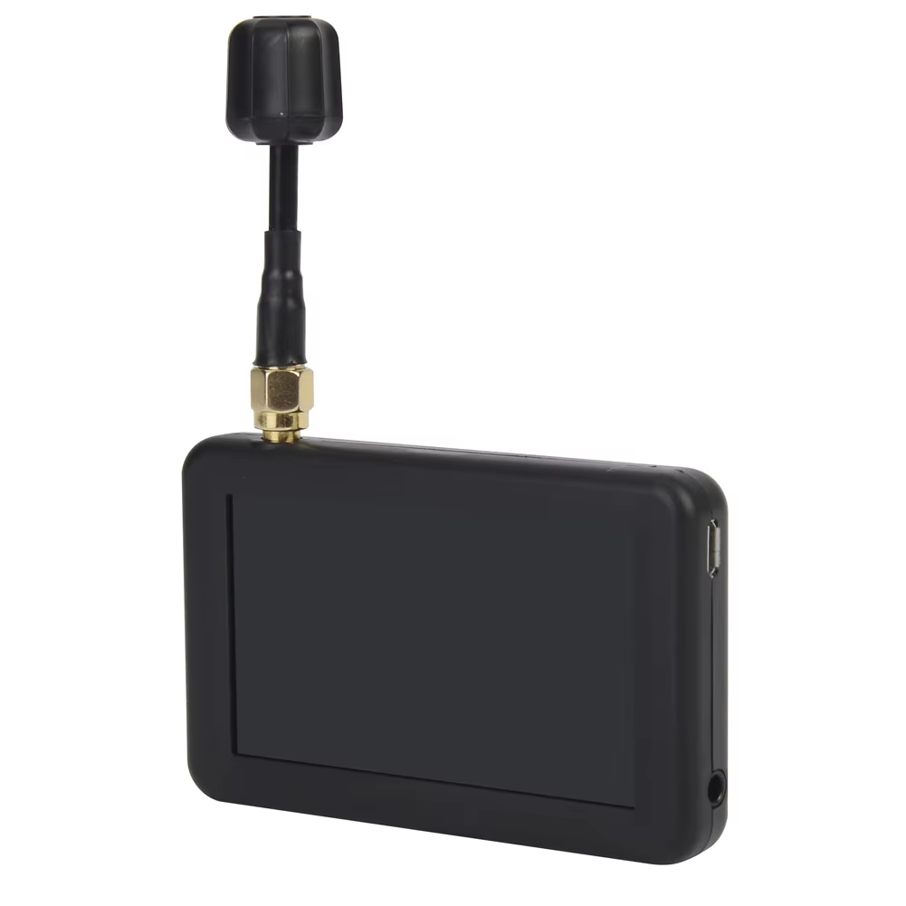 Діагональ екрану: 3” Тип екрану: IPS LCD, LED підсвітка Роздільна здатність: 480x320 Яскравість: 500cd/m² Кут огляду: 360° без мертвих зон Відеозатримка: менше 20мс Антенна: RP-SMA male USB: англійська/китайська Питання: DC 5V/1A (USB інтерфейс) Акумулятор: Li-Ion 3.7V, 800mAh Споживання: 360~400mA @3.7~4.2V Струм зарядки: 800mA (макс.) Частоти: Band A/B/E/F/F 180x120x25мм Функції: підтримка автоматичного пошуку сигналу, багатомовне меню