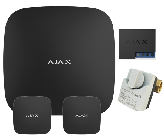 Комплект антипотоп 1/2" кран Tervix Pro Line ORC 220В, централь Ajax Hub, 2 датчики протікання Ajax Leaks, реле WallSwitch