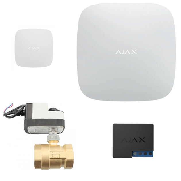 Комплект Ajax Hub 2 (2G) із краном перекриття води Ajax WaterStop 1" (White)