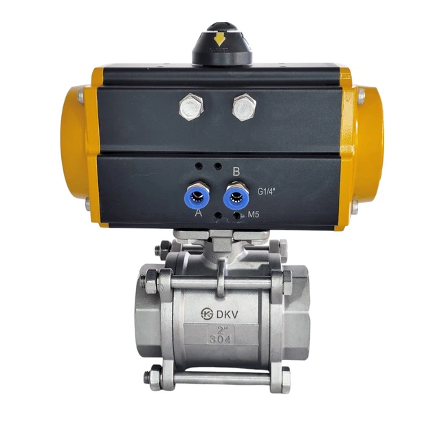 Шаровий кран з пневмоприводом, нержавіюча SS304, 3сост, пружинне повернення, DN50, внутрішня-внутрішня різьба G2"F-G2"F