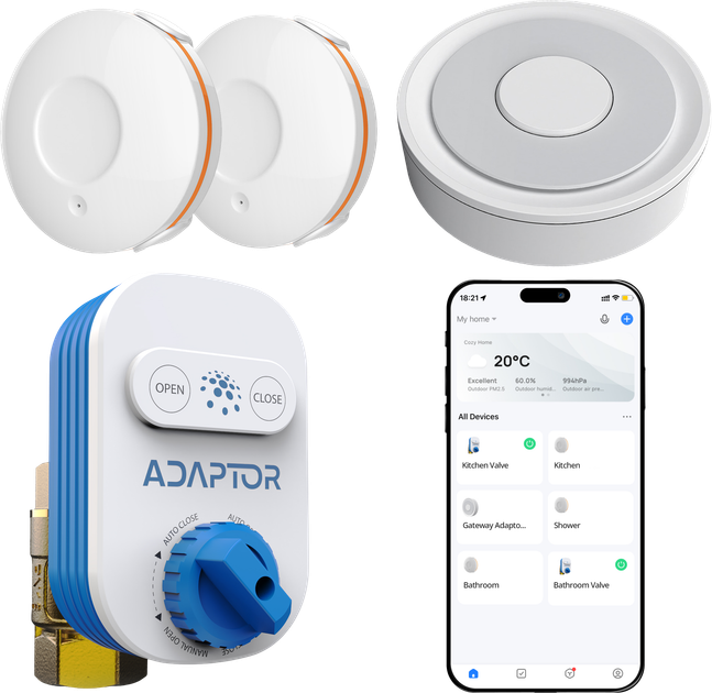 Комплект захисту від протікання Adaptor AKIT-3 (клапан 3/4" + шлюз + 3 датчикa витоку), 615302609
