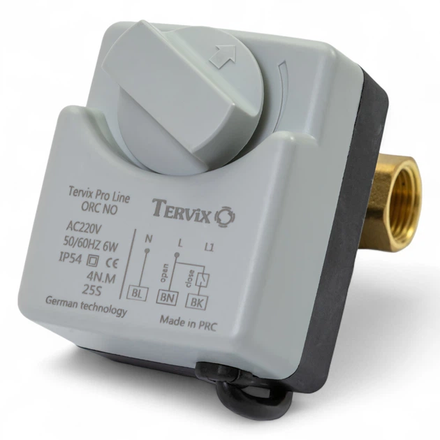 Клапан кульовий нормально-відкритий 1/2" з електроприводом 220В Tervix Pro Line ORC, 201112