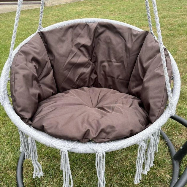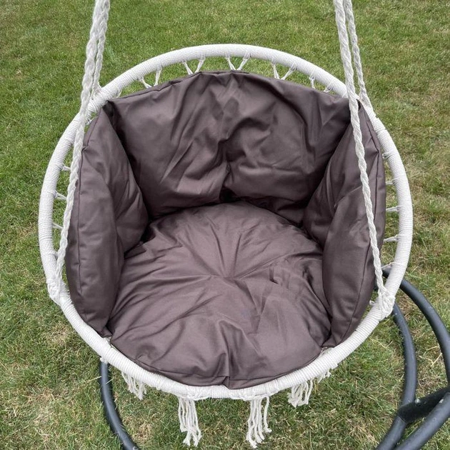 Підвісне кріслогойдалка Gordon з подушкою, сіре/коричневе бавовна + сталь, 806040 см, 150 кг