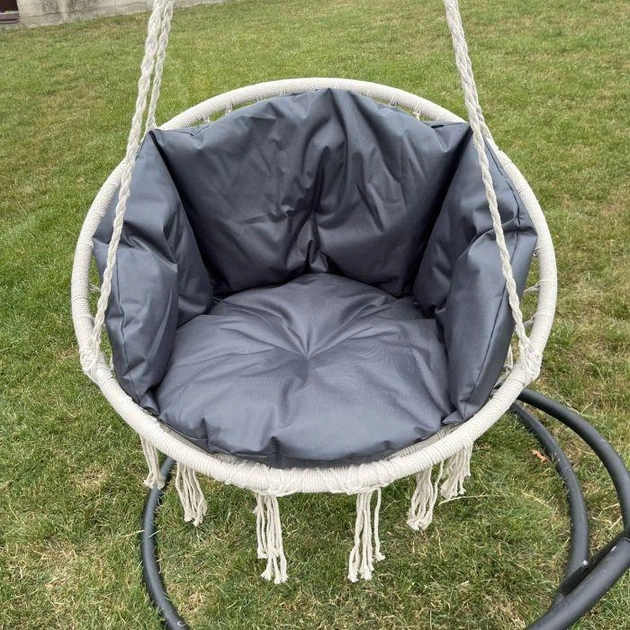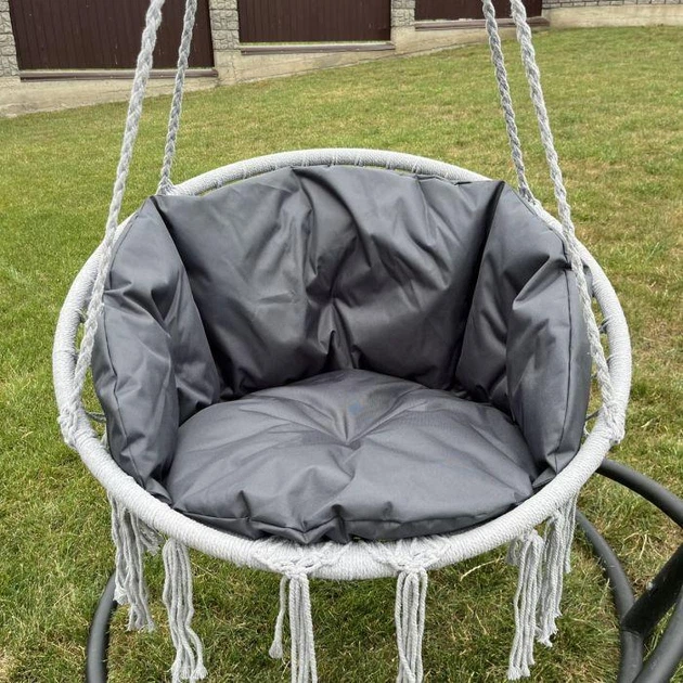 Підвісне кріслогойдалка Gordon з подушкою, сіре бавовна + сталь, 806040 см, 150 кг