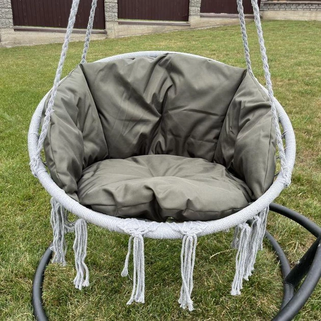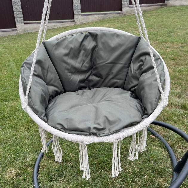 Підвісне кріслогойдалка Gordon з подушкою, сіре/хакі бавовна + сталь, 806040 см, 150 кг