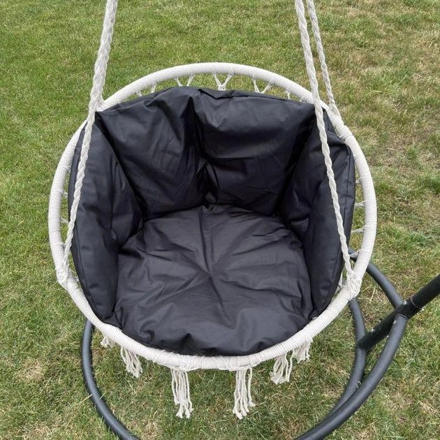 Підвісне кріслогойдалка Gordon G332 з подушкою, сіре/чорне бавовна + сталь, 806040 см, 150 кг