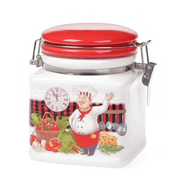 Банка керамічна "Шеф-кухар" 450мл (квадратна) з металевою затяжкою (109039)