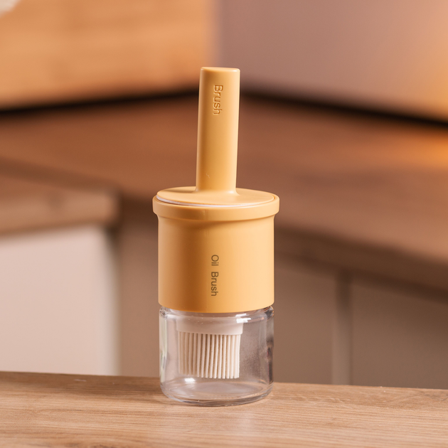 Баночка для олії з пензликом 300 мл диспенсер з пензликом для оливкової, соняшникової олії Жовтий HP-34-11Y