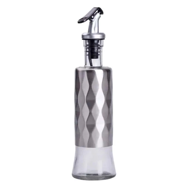 Пляшка для олії з дозатором 300 мл хром із скла та металу для зберігання рідких приправ олії оцету або соусу