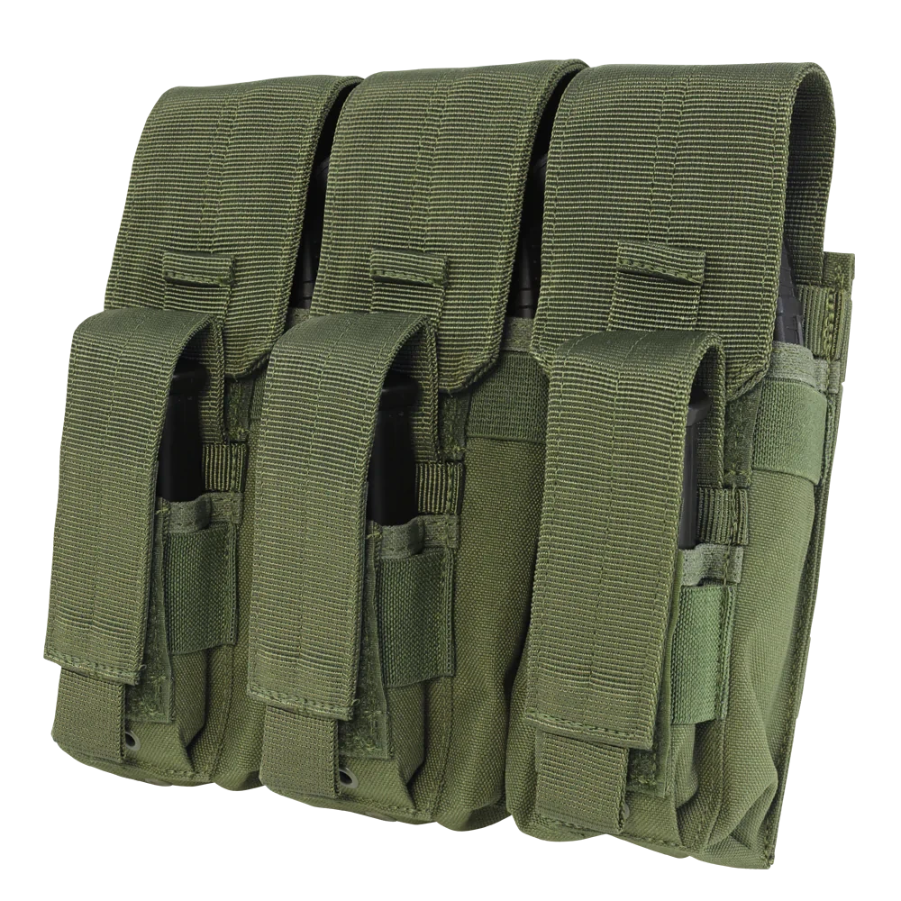 Підсумок Condor Triple Stacker Open-Top M4 Mag Pouch призначений для зберігання магазинів. Підсумок вміщує 6 магазинів М-16. Підсумок Triple Stacker Open-Top M4 Mag Pouch створений для використання в комплекті бойового індивідуального екіпірування, обладнаного модульною системою кріплення знімних підсумків, сумісною із системою MOLLE. Підсумок має відкриту конструкцію, фіксація магазинів забезпечується за рахунок еластичних строп. Щоб уникнути зайвого конденсату всередині підсумку конструкцією передбачені люверси для стоку води.