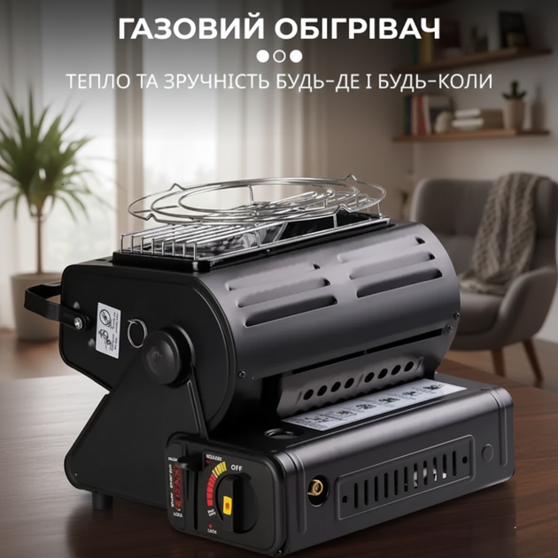 Туристичний газовий обігрівач 3000W з функцією плитки-печі 2в1 п'єзопідпал одна конфорка