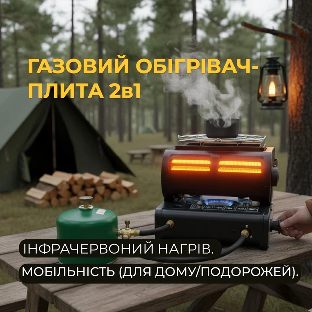 Газовий обігрівач-плита 2в1