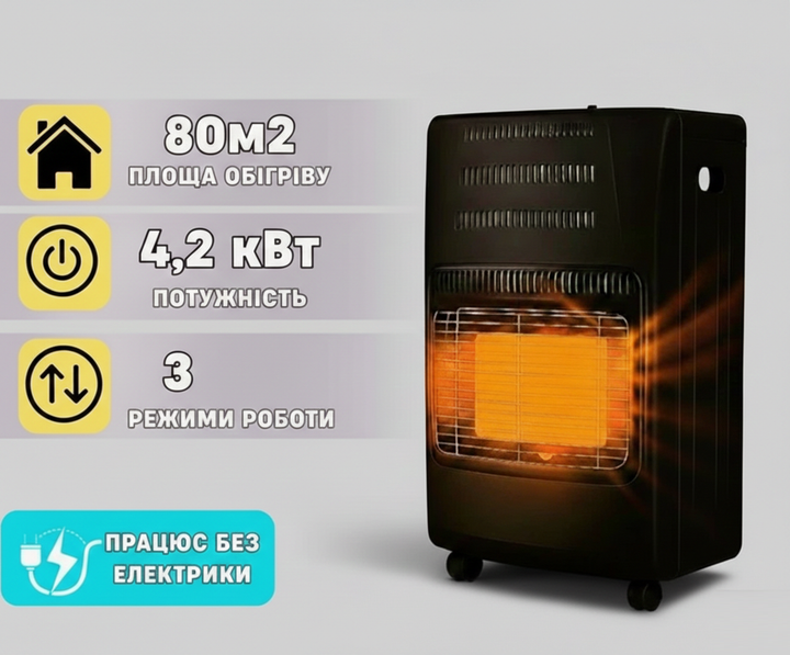 Газовий інфрачервоний обігрівач 4200 Вт + Редуктор і Шланг, автономна піч на газу для дому та гаража
