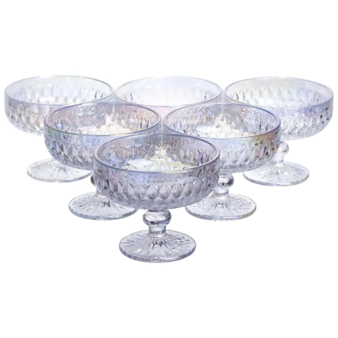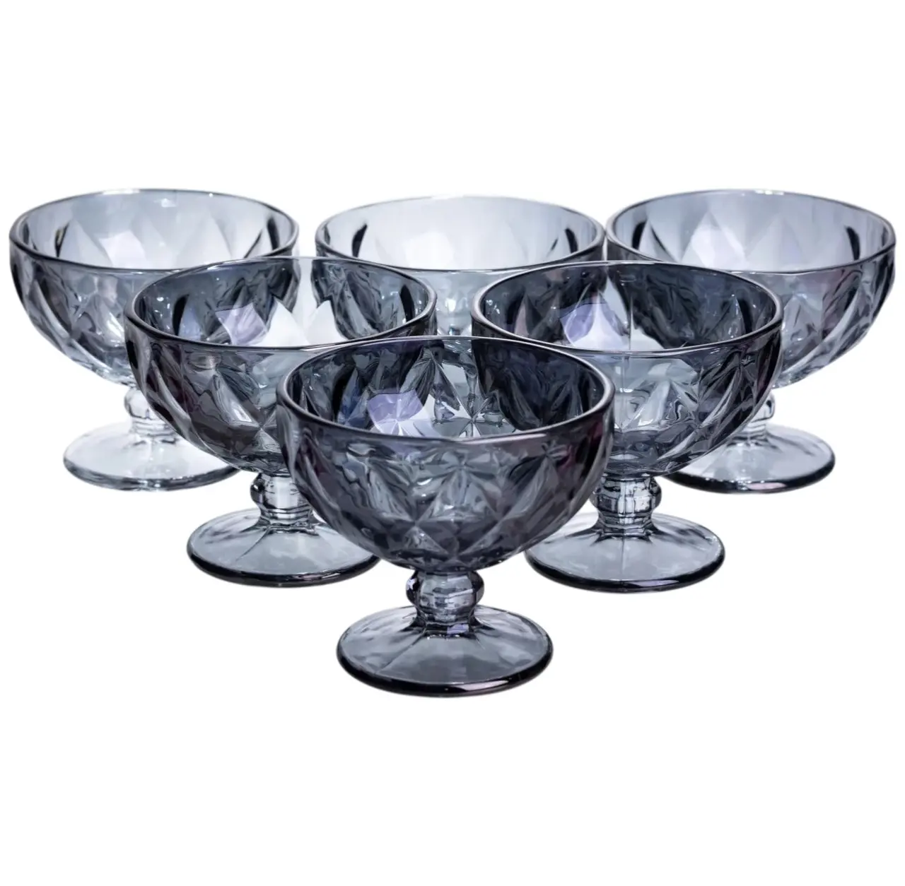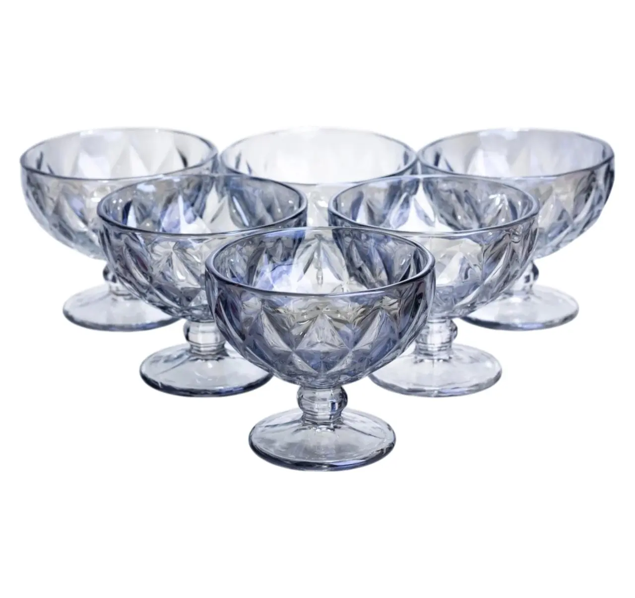 Набір креманок Diamond Blue 6 штук по 300 мл HP-19-277 прозорий для десертів йогуртів з ограненням Yiwu HP-19-277