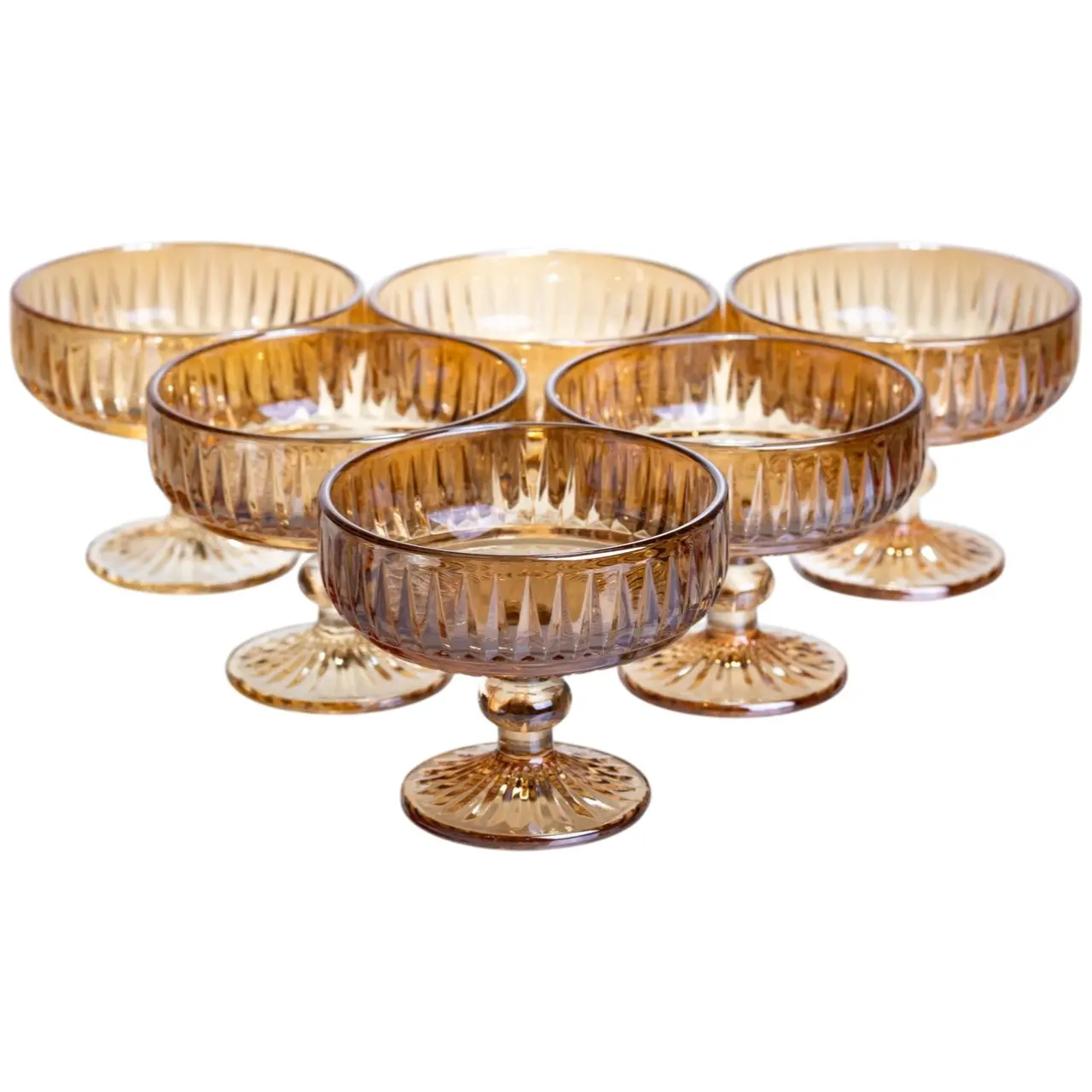 Набір креманок на ніжці 6 штук із товстого скла бурштиновий HP-19-249 прозора креманка для десертів морозива и фруктових сал