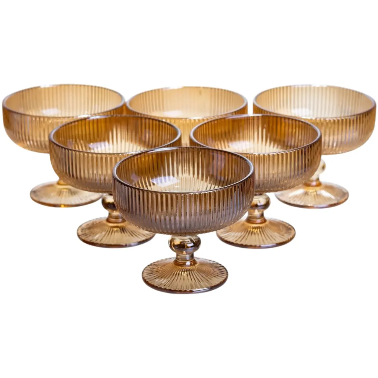 Набір креманок 6 штук по 340 мл ребристих із товстого скла коричневий HP-19-227 креманка для морозива фруктових салатів десе