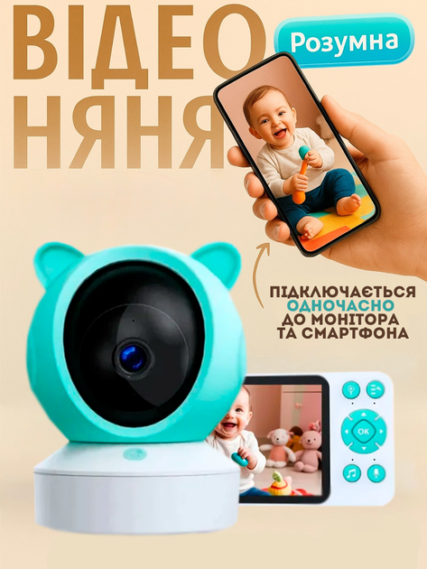 Відеоняня для дитини VB-601-00006157 з WIfi 8 колискових 260 метрів радіус дії на акумуляторах з двостороннім зв'язком та те