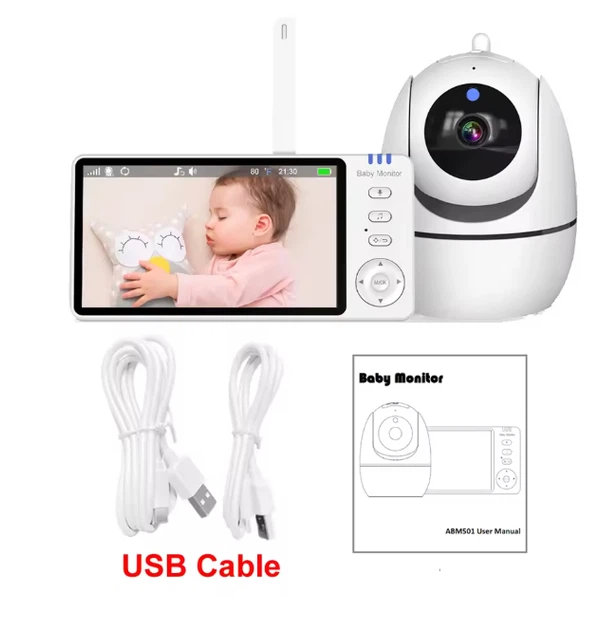 Відеоняня з дисплеєм ABM501 спостереження за дітьми з поворотною камерою і двостороннім зв'язком USB / HD 720P/ 3500 мАч Біл