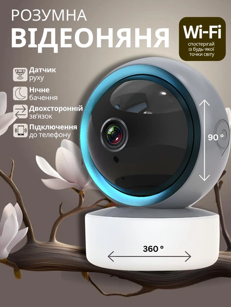 Відеоняня з підключенням до телефону WiFi Smart Camera 1080P 2MP бездротова відеоняня через телефон (6763)