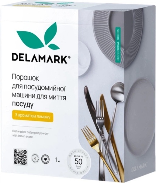 Засіб для миття посуду Delamark — інноваційне рішення для отримання абсолютно чистого посуду після його миття в посудомийній машині. Засіб має високу миючу здатність і ефективно видаляє залишки їжі. Також він має знижене піноутворення, тому добре змивається невеликою кількістю води. Склад засобу дуже безпечний, його можна використовувати для миття дитячого посуду. Не рекомендується мити в посудомийних машинах вироби з дерева, алюмінію, кришталю, антикварного і розписного фарфору.